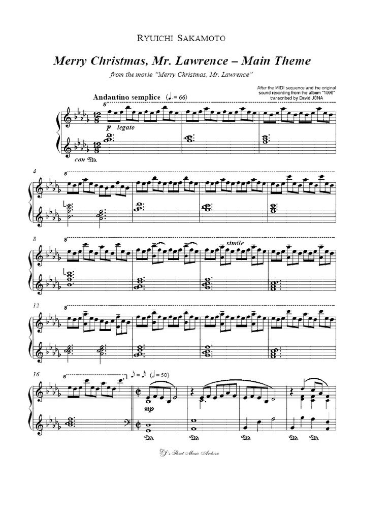 Print And Download Merry Christmas Mr Lawrence Ryuichi Sakamoto Sheet Music For Piano Made By 13 Li Merry Christmas Mr Lawrence Christmas Piano Song Notes