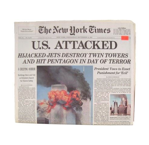 New York Times Original 9 12 01 Us Attacked Headlined Newspaper
