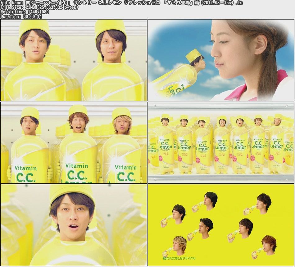 Tvcm Cut 関ジャニ エイト サントリー C C レモン リフレッシュゼロ ずらり登場 篇 2012 03 15s