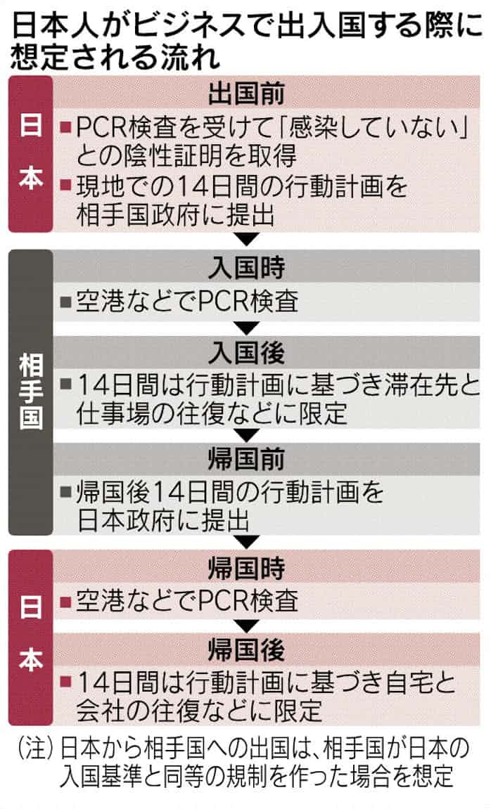 ビジネス渡航にpcr検査 行動計画も義務付け 日本経済新聞