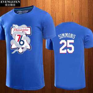 费城76人队t恤短袖篮球运动服休闲球迷服男士恩比德西蒙斯球衣服 阿里巴巴找货神器