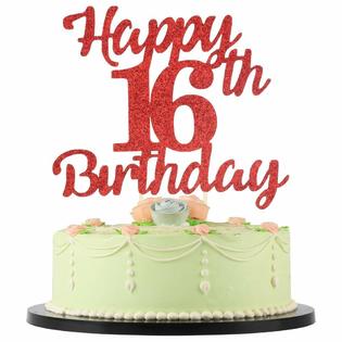 Lveud 16th Birthday Cake Topper For Happy Birthday 16 Red Flash 16th Cake Top