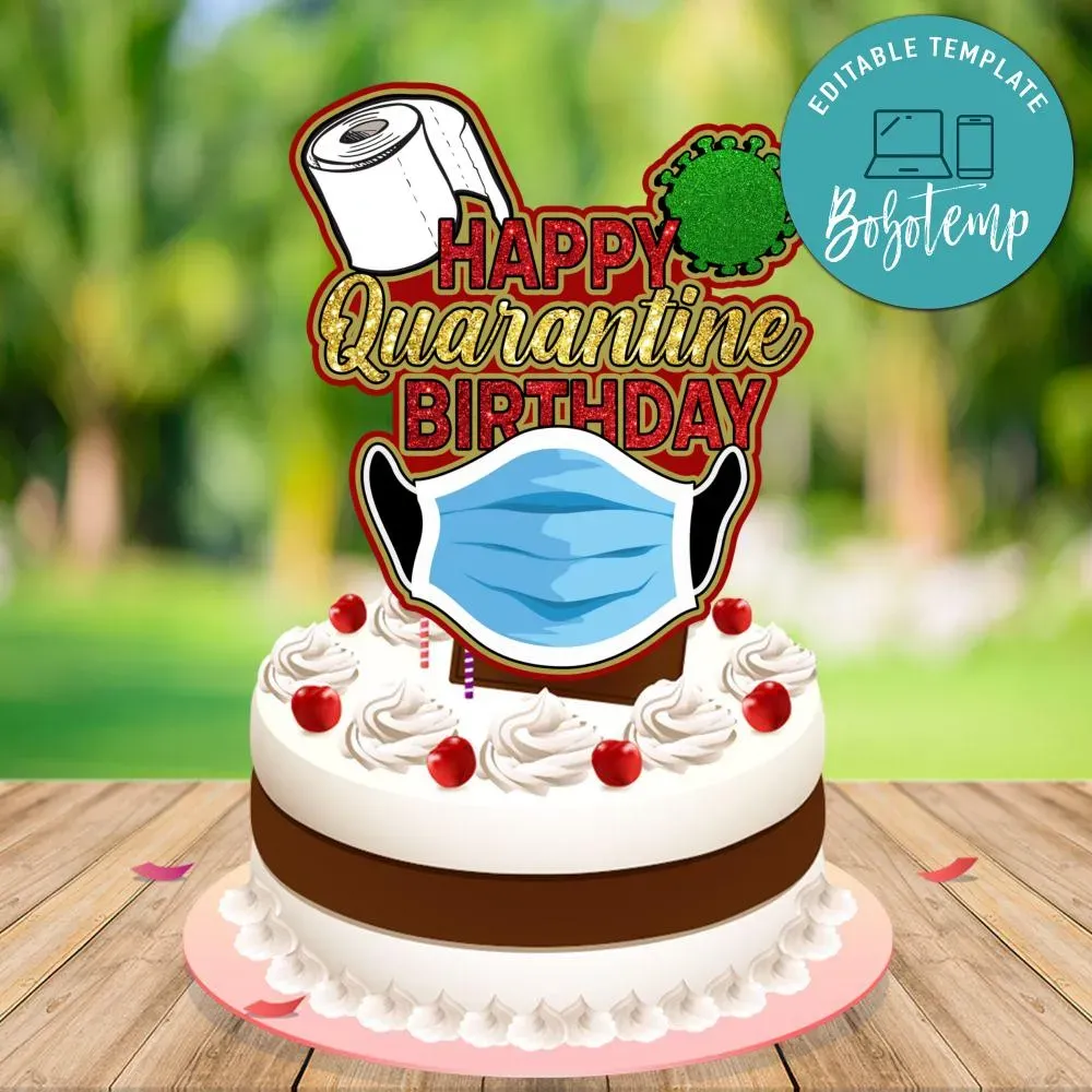 Printable Happy Birthday Quarantine Cake Topper Template Diy Bobotemp