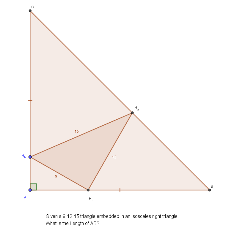 Solution I Need To Find The Perimeter Of A Right Triangle That Has A Height Of 9 And Hypotenuse Of 15 Please Advise Thank You