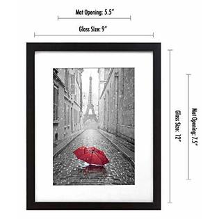 Americanflat 9x12 Inch Black Frame Made To Display Pictures 6x8 Inches With Matte Or 9x1