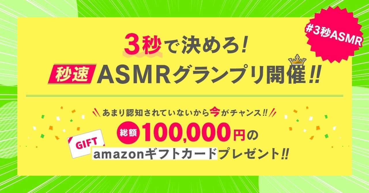 総額10万円 3秒asmrグランプリ開催 Amazonカードプレゼント企画 Zowieq Official ゾウィークオフィシャル Note